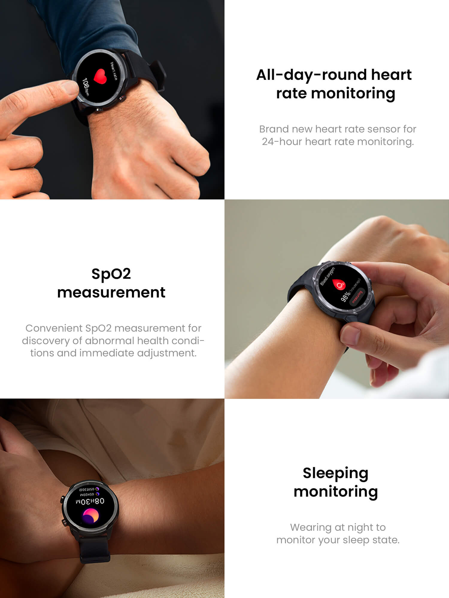 Actualización 24/7 de la frecuencia cardíaca 4PD, SpO2, sueño, estrés y entrenamiento de respiración.