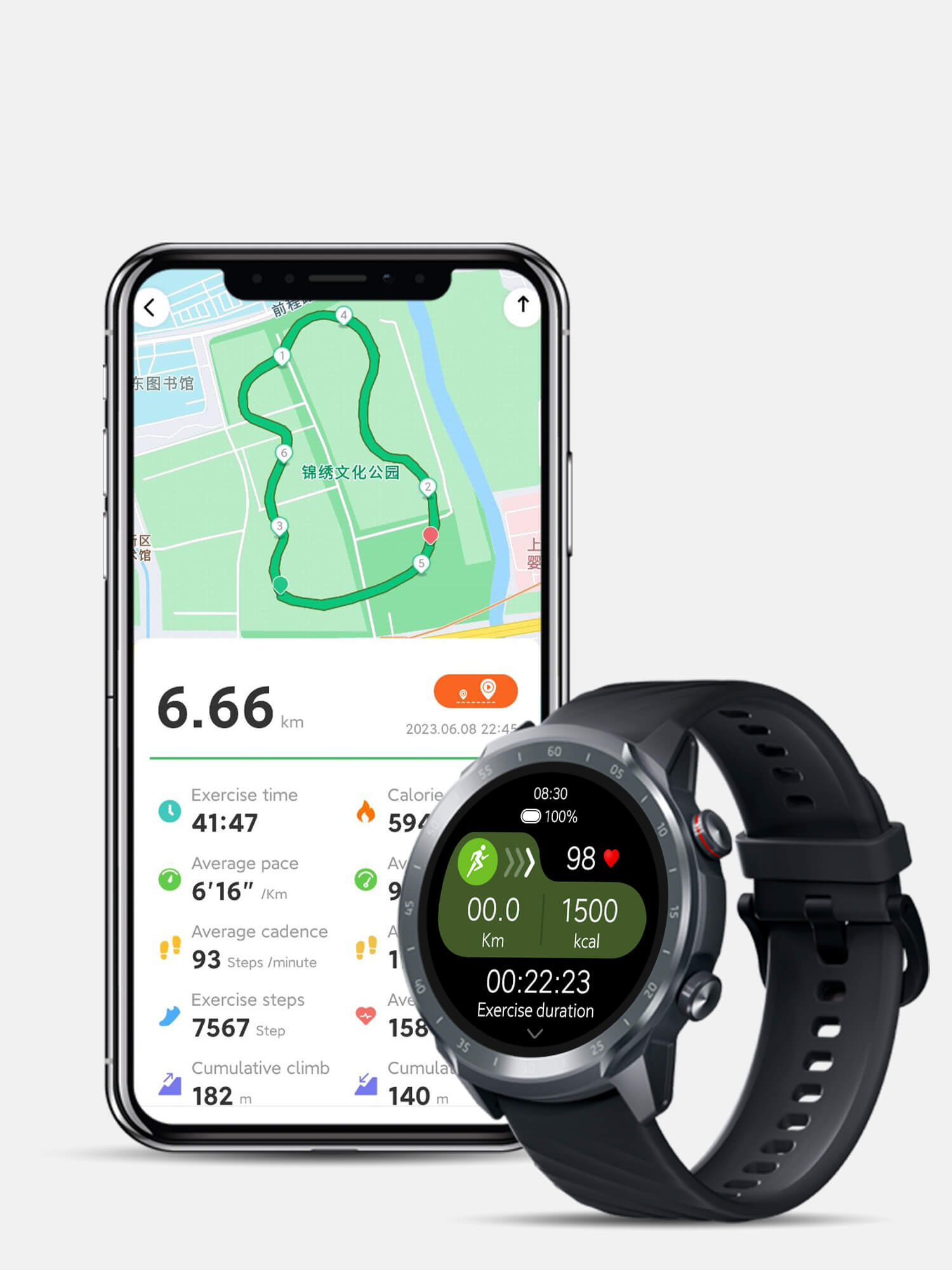 Emparejado con el GPS de tu teléfono para entrenamientos visualizados. Resistencia al agua 2ATM con 70 modos deportivos especializados.