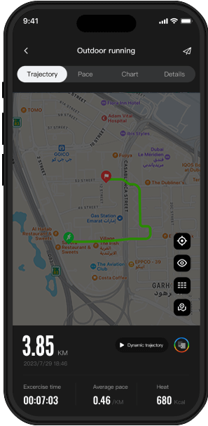 In the Mibro Fit app, you can view activity and exercise data, access beautiful watch faces, import routes, and share with others.