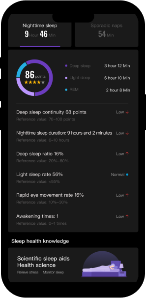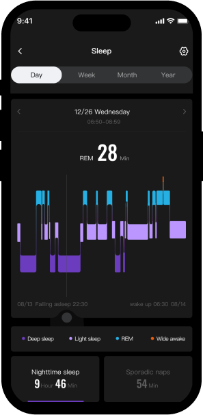 As the first rays of morning light shine down, your watch has collected the secrets of the night. Through the Mibro Fit app, you can explore the full scope of your sleep – total duration, deep sleep percentage, light sleep and REM cycles, even the moments when you were awake, all clearly presented. Each metric is a strand of the dream code waiting to be deciphered. Meanwhile, using big data and algorithms, we tailor a sleep score for you, like a carefully prepared report card reflecting your sleep quality