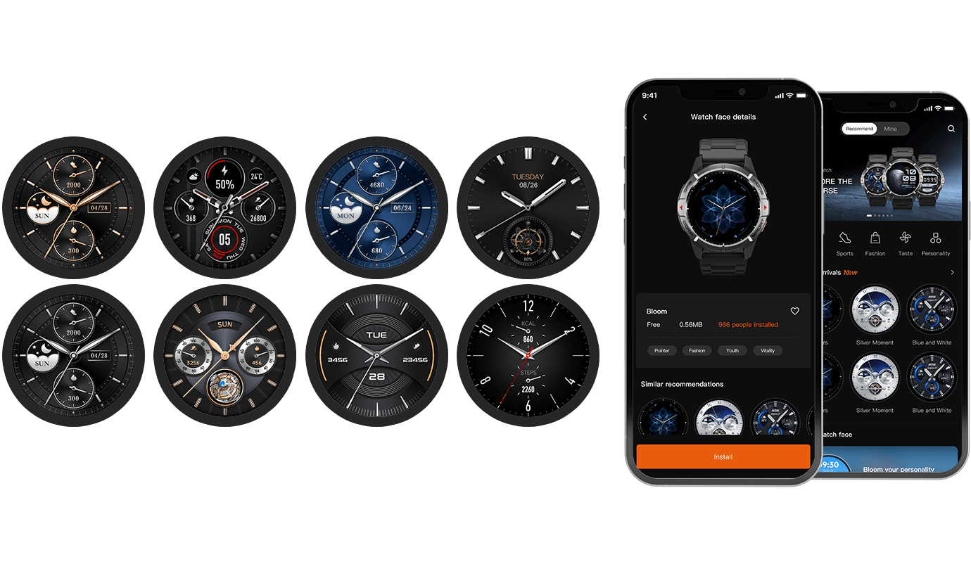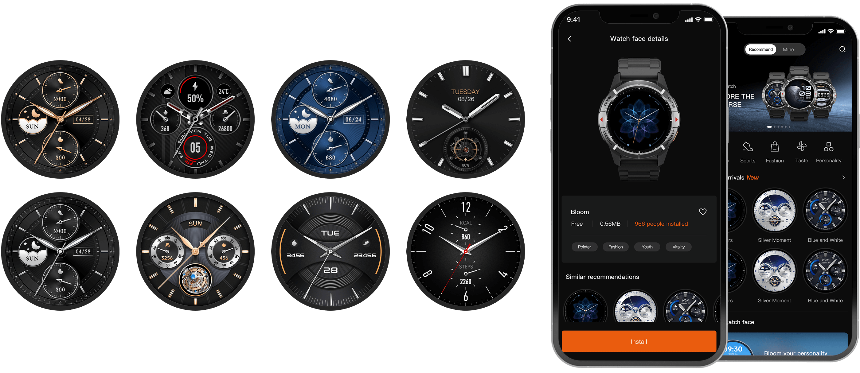 Step into the gallery of time, customizing your aesthetic of time. The Mibro Fit watch face gallery offers a vast selection of designs to choose from. From minimalist lines to vintage nostalgia, from high-tech digital displays to artfully crafted illustrations, each watch face is a masterpiece of design. On special occasions, upload your own photos, customize backgrounds, fonts, and colors, allowing creativity and individuality to flourish, turning the passage of time into a piece of art on your wrist.