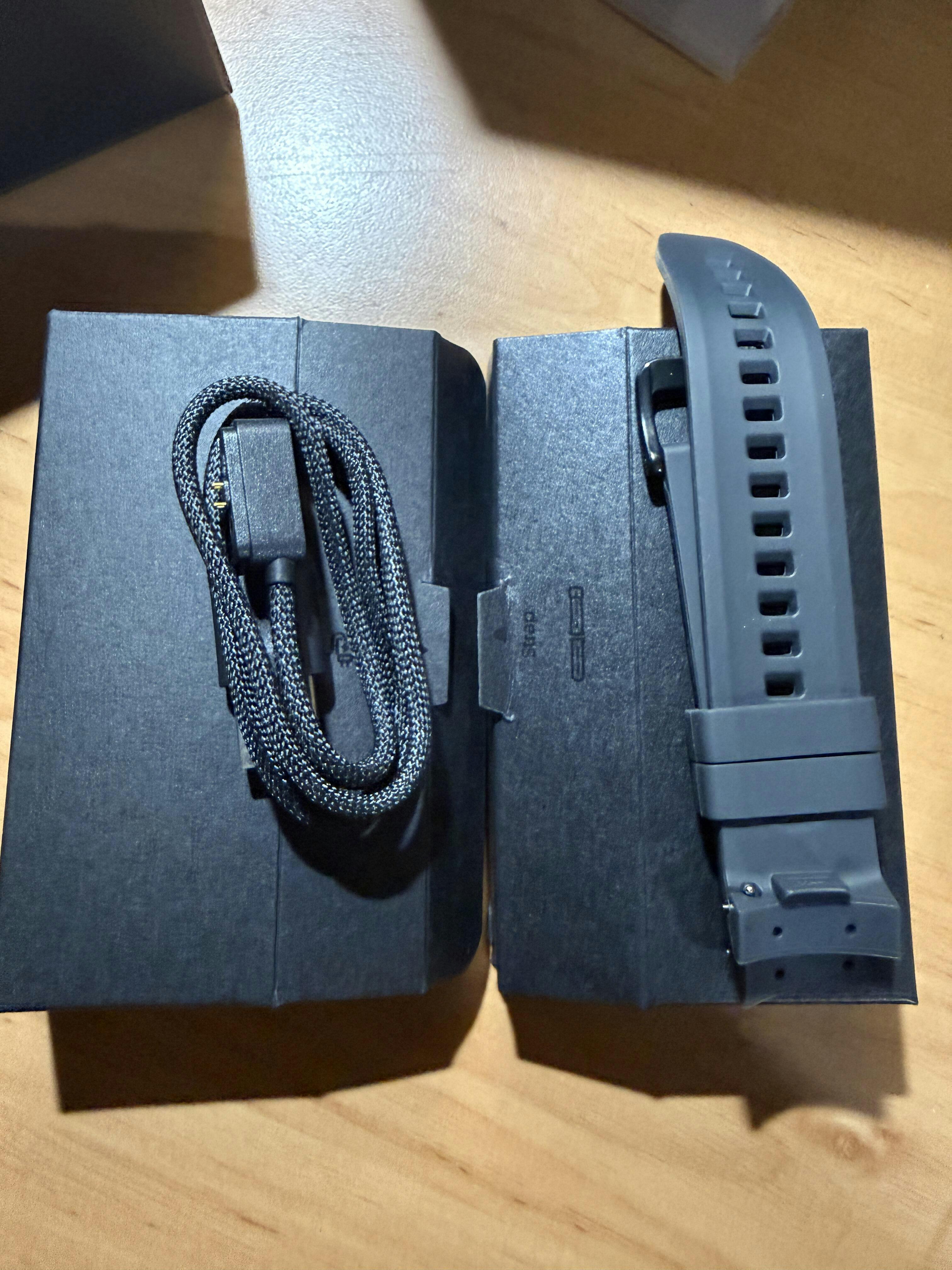 Includes one orange silicone strap, one black silicone strap, and one charging cable.