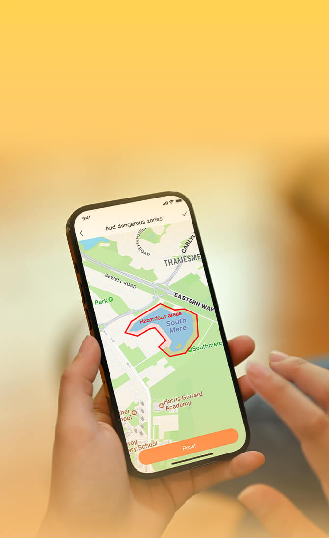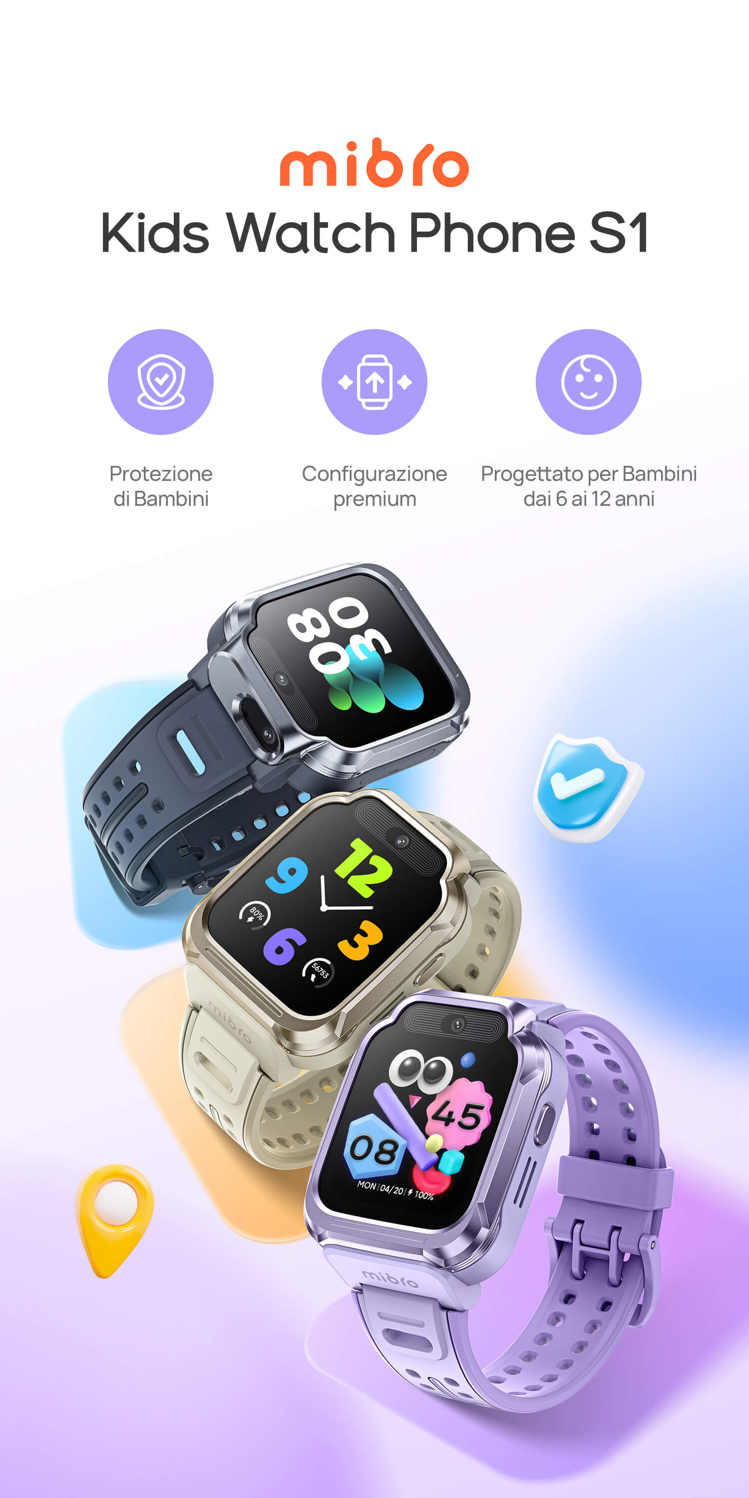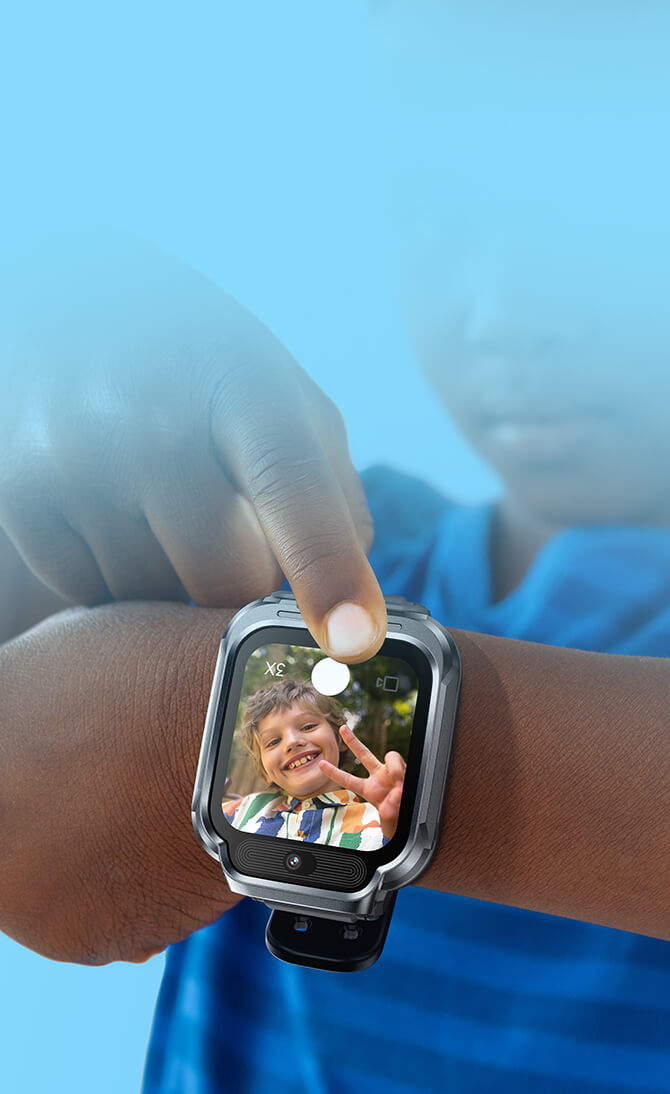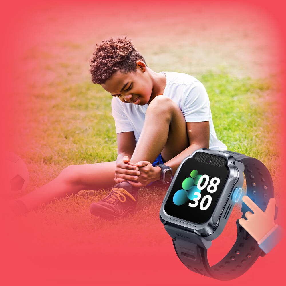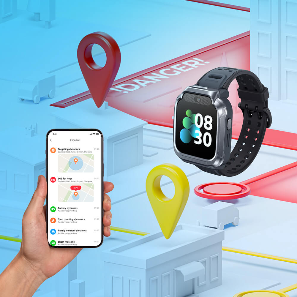 Your child can send an instant SOS alert by holding the side button. Parents receive notifications when entering or leaving predefined safe/danger zones.