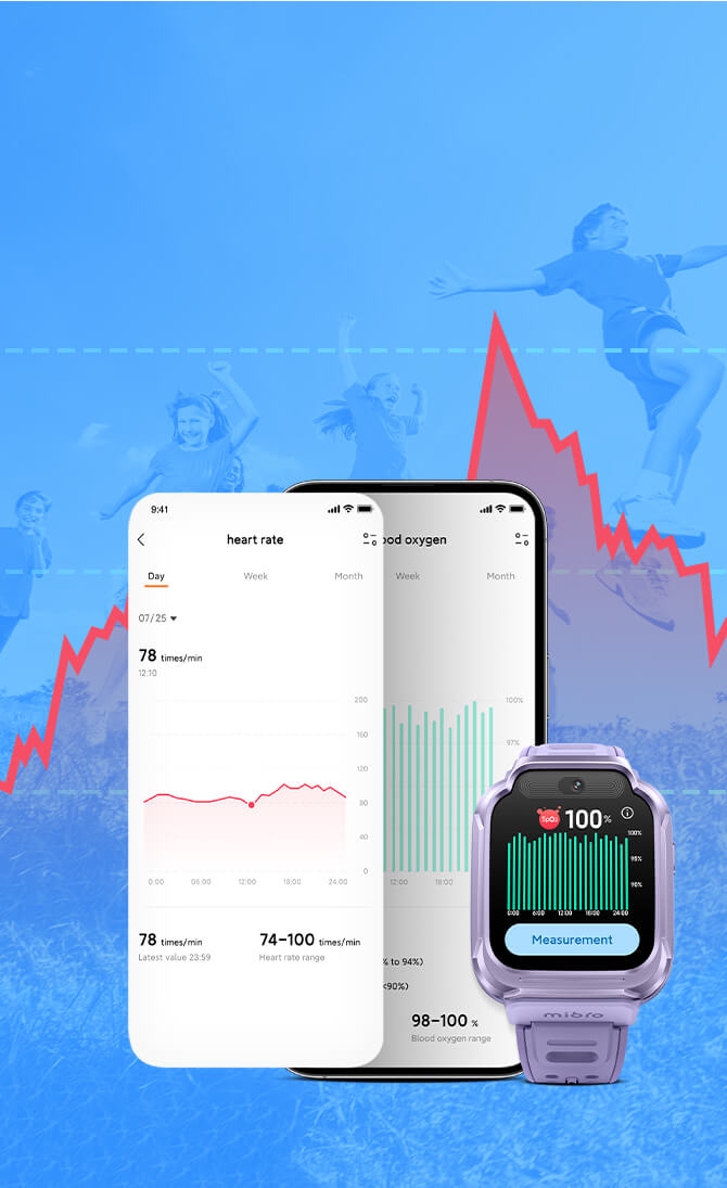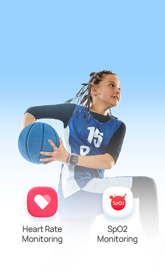 Monitor your child's well-being with heart rate and SpO2 tracking. It also supports multiple sports modes and generates periodic exercise reports.