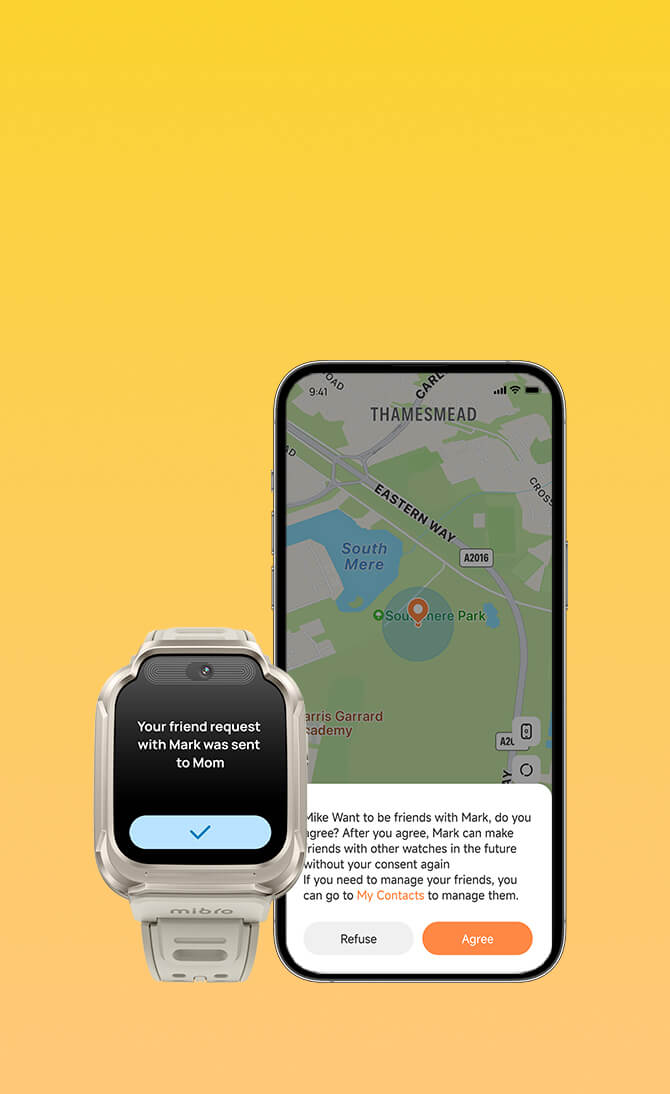 Manage contacts, control screen time, and activate School Mode to mute distractions during class, all from your parent app.
