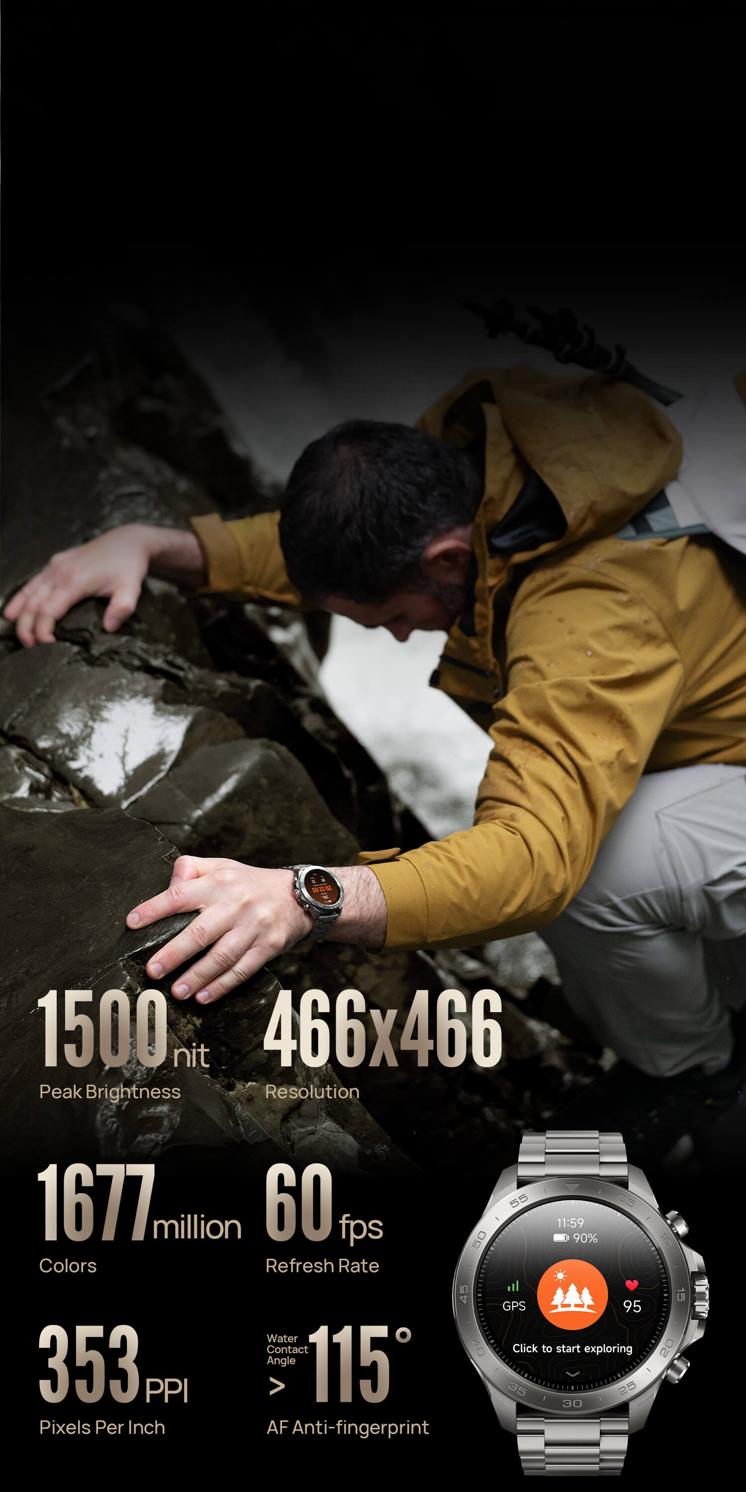1.32" Amoled 466*466, AOD,1500nits,PPI 353
