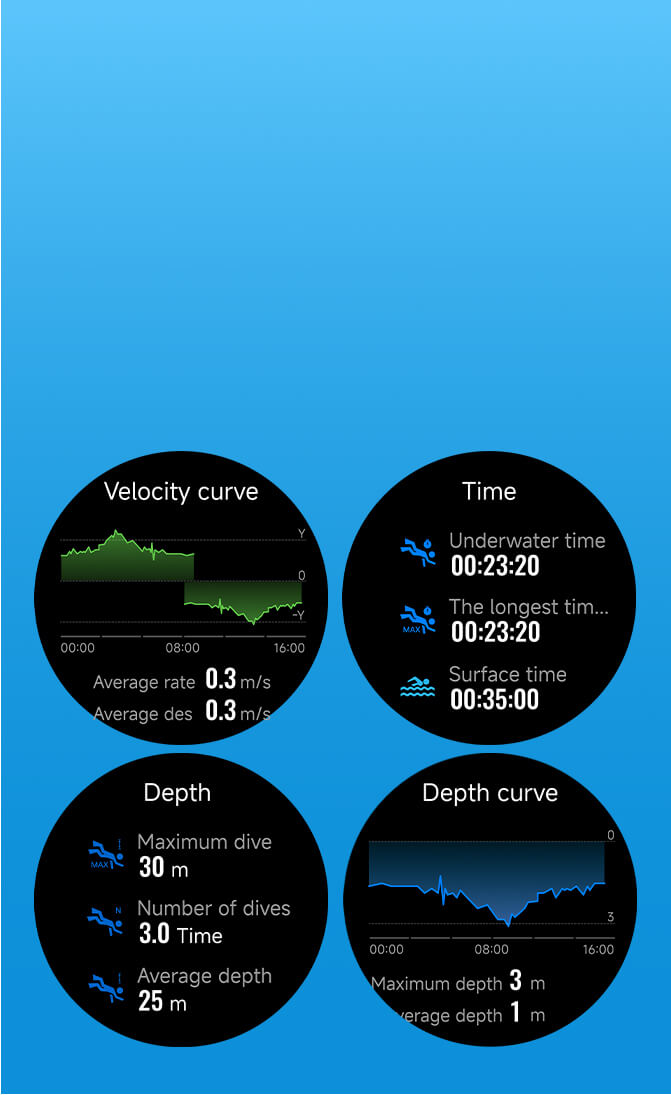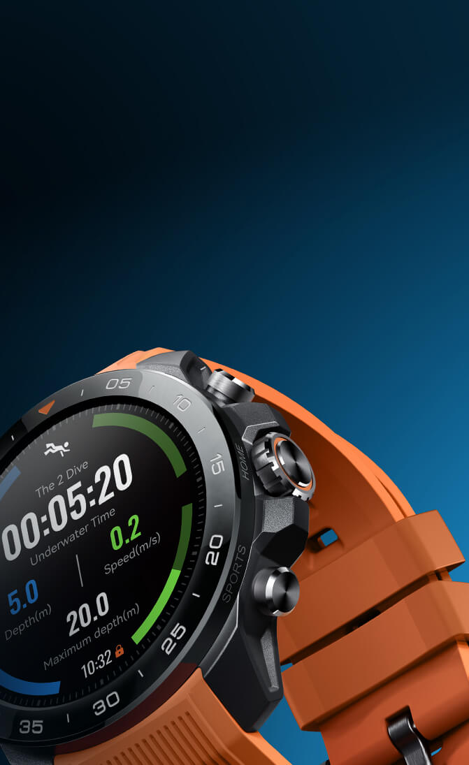 Track depth (current/max), ascent/descent speeds, dive time, and count in real-time. Set custom depth/time warnings with visual+vibration alerts. The bright AMOLED screen and 3-button controls work flawlessly underwater, even with gloves.