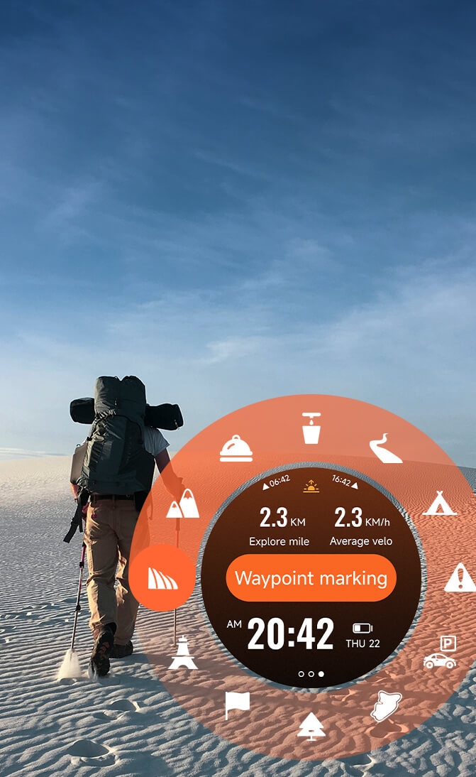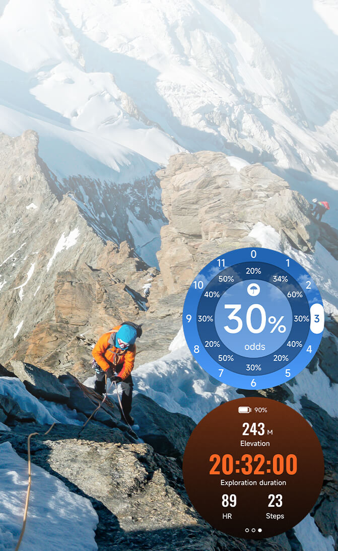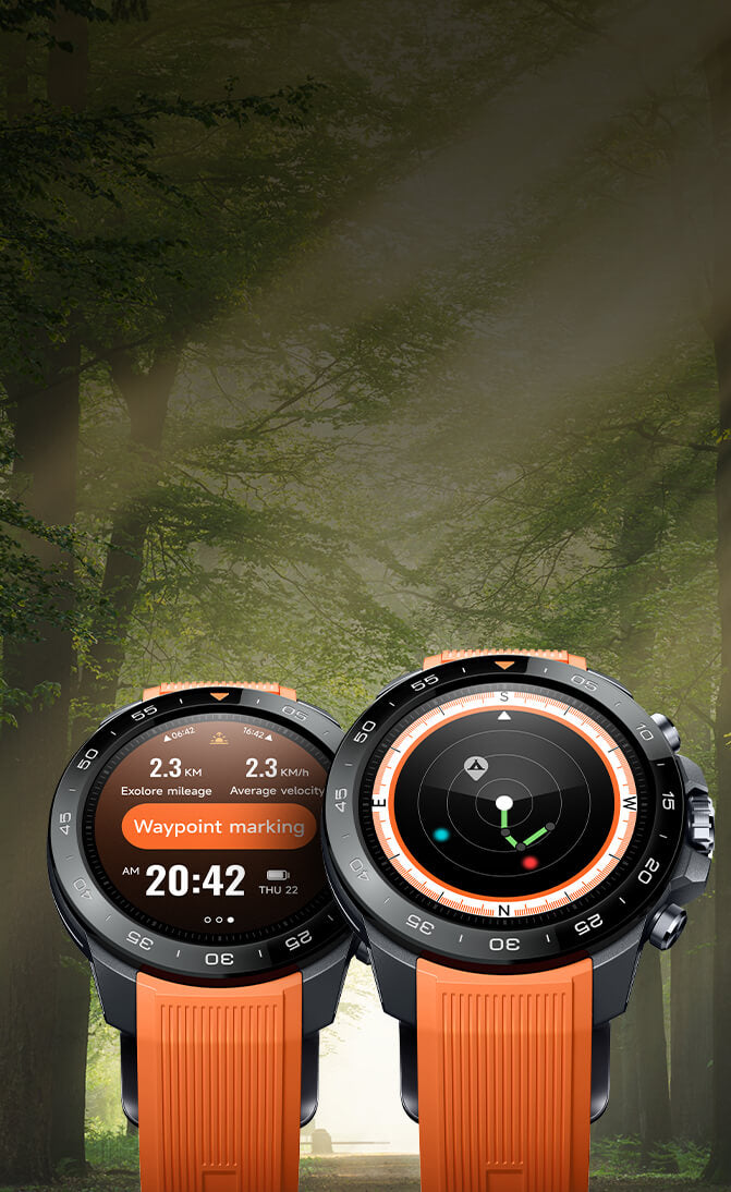 Pinpoint accuracy outdoors with L1+L5 satellite tracking (200% better signal, 20% more accuracy). One-touch Explorer Mode offers waypoint marking (custom icons), track-back navigation (offline), weather alerts, and essential tools like a compass and barometer.