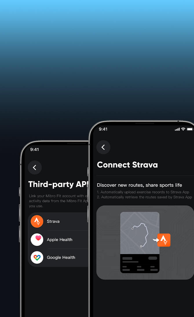 Mibro Galaxy OS 2.0 offers deep personalization (50+ data cards), syncs with Strava/Apple Health/Google Fit, and supports 150+ sports modes, including Padel stroke analysis.