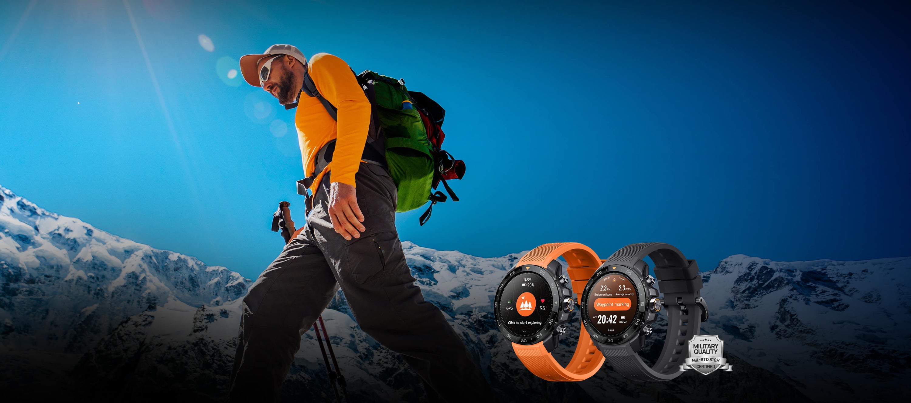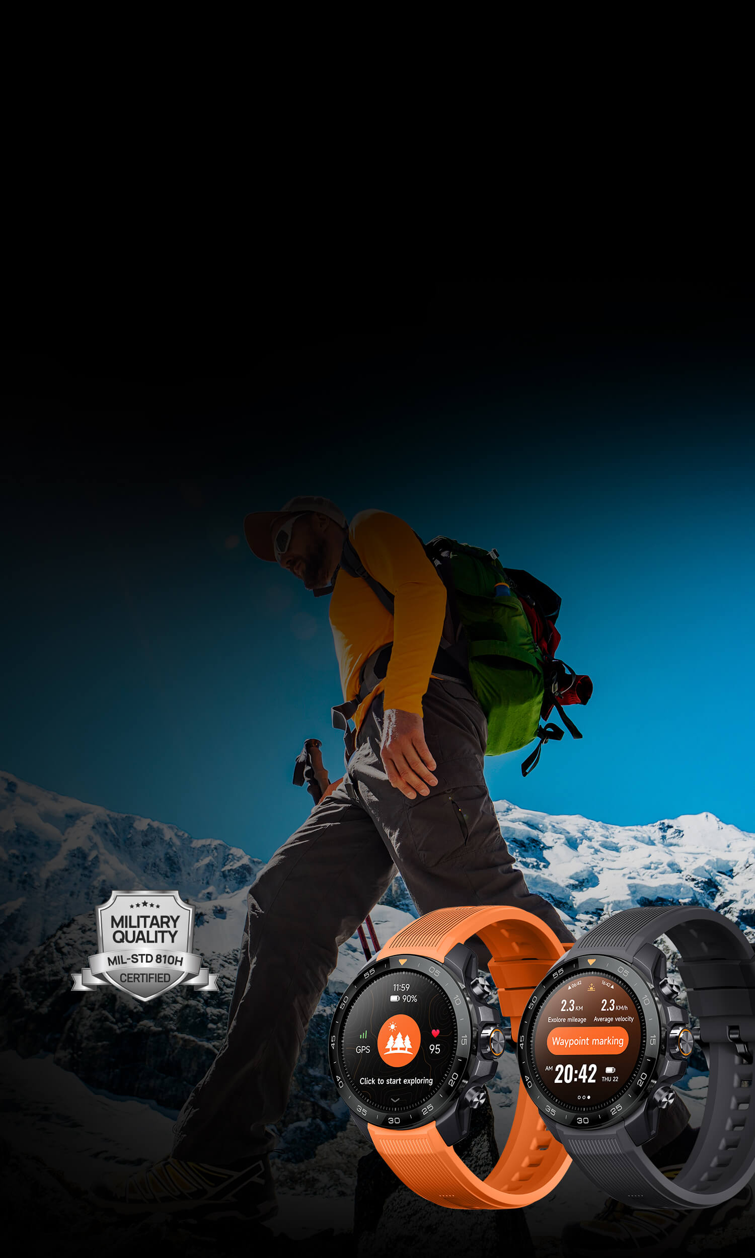 Built for extremes. Survives -30°C to 70°C temperatures, salt spray, dust, shocks, and humidity. Features a diamond-hard nano-ceramic bezel, scratch-resistant Corning GG3 glass, and a super-strong glass-fiber nylon case. Adventure without limits.