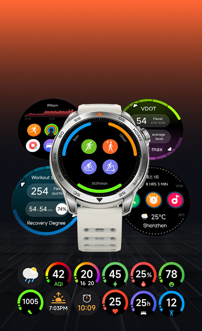 Sports: Sports record,Route navigation,Training status,Running ability.
