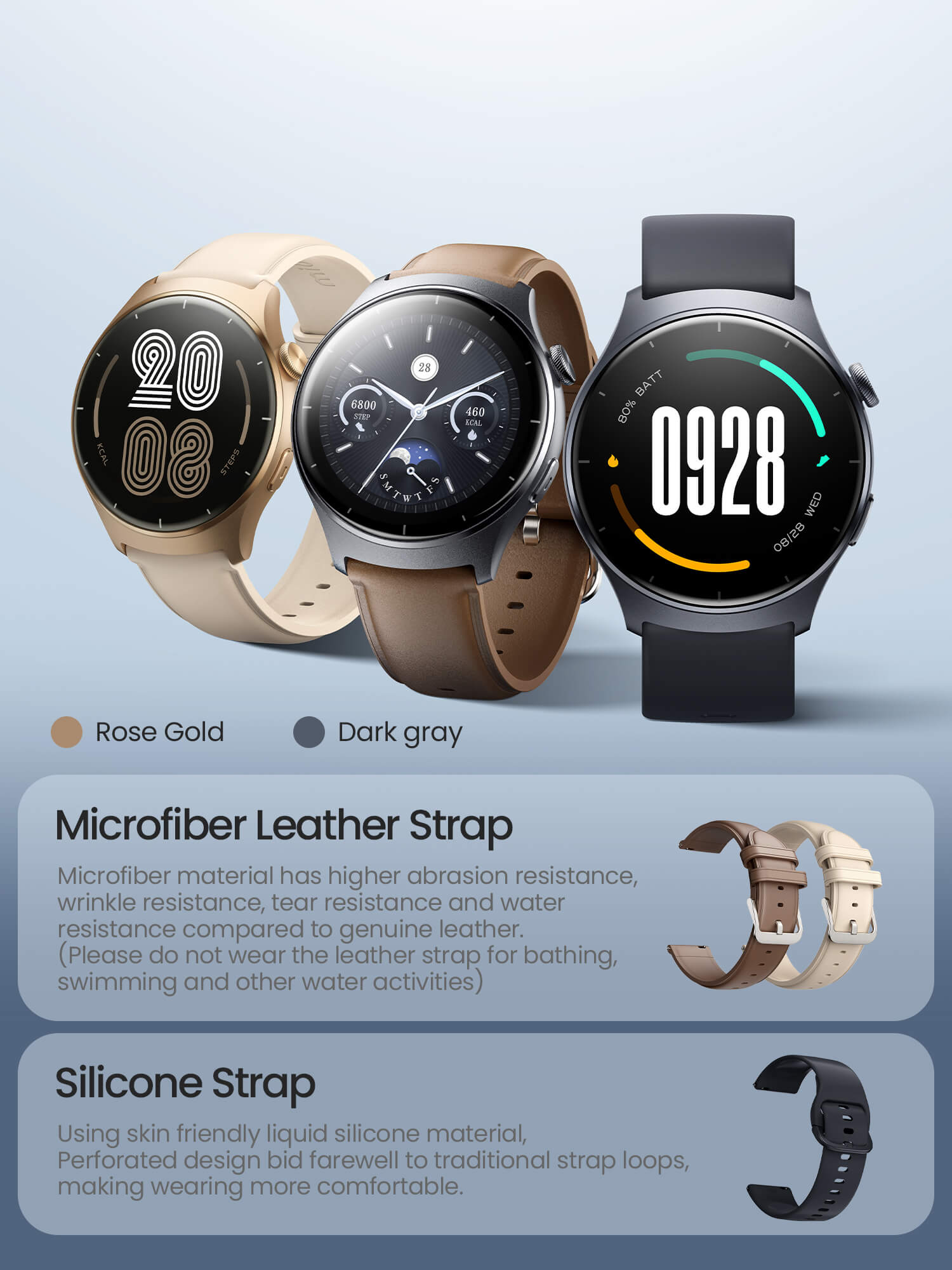 Choose from multiple watch faces and two trendy strap options to match your style.