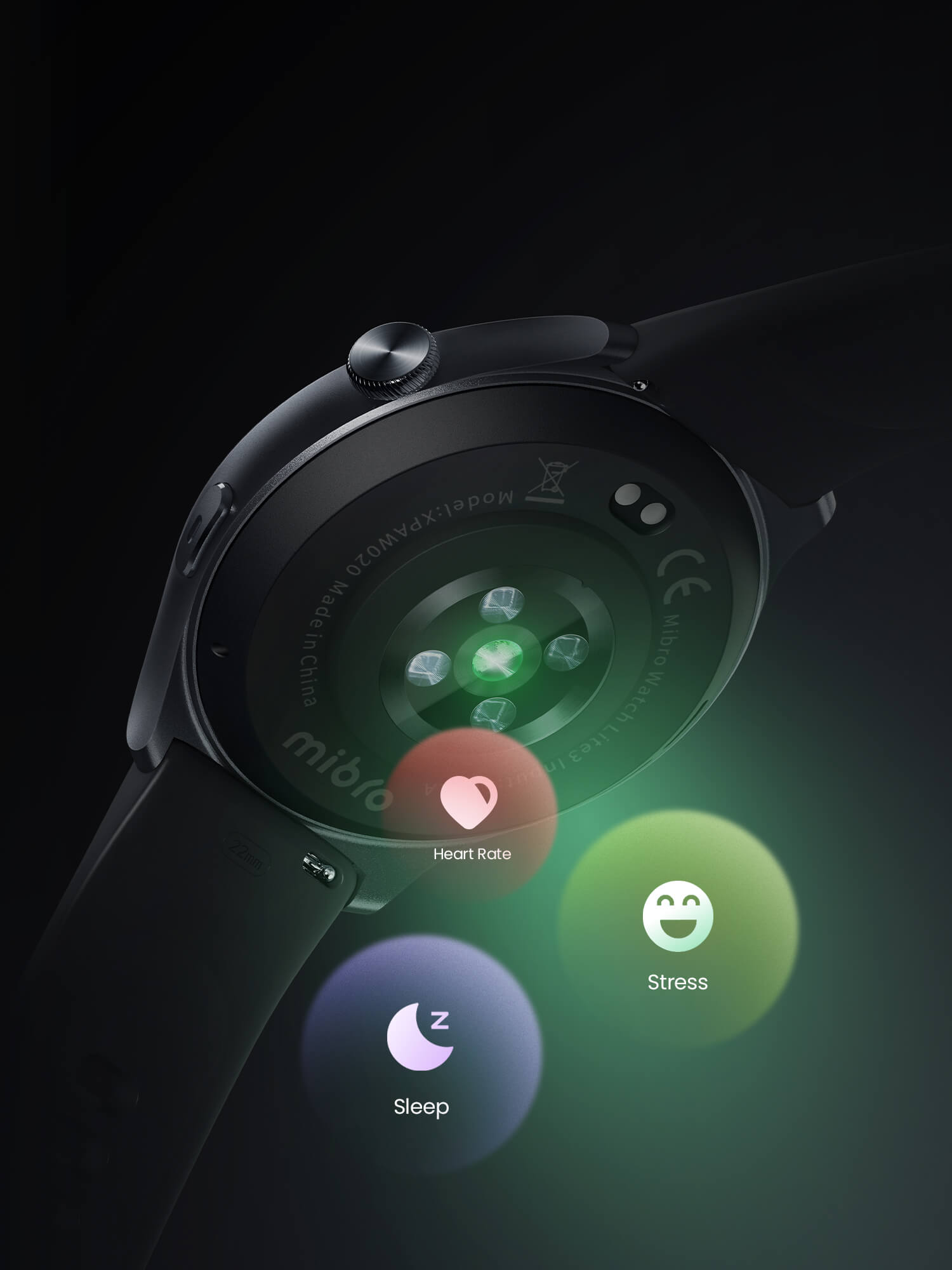 24/7 monitoring of heart rate, oxygen levels, stress, and sleep, with alerts for abnormal readings and women health care.