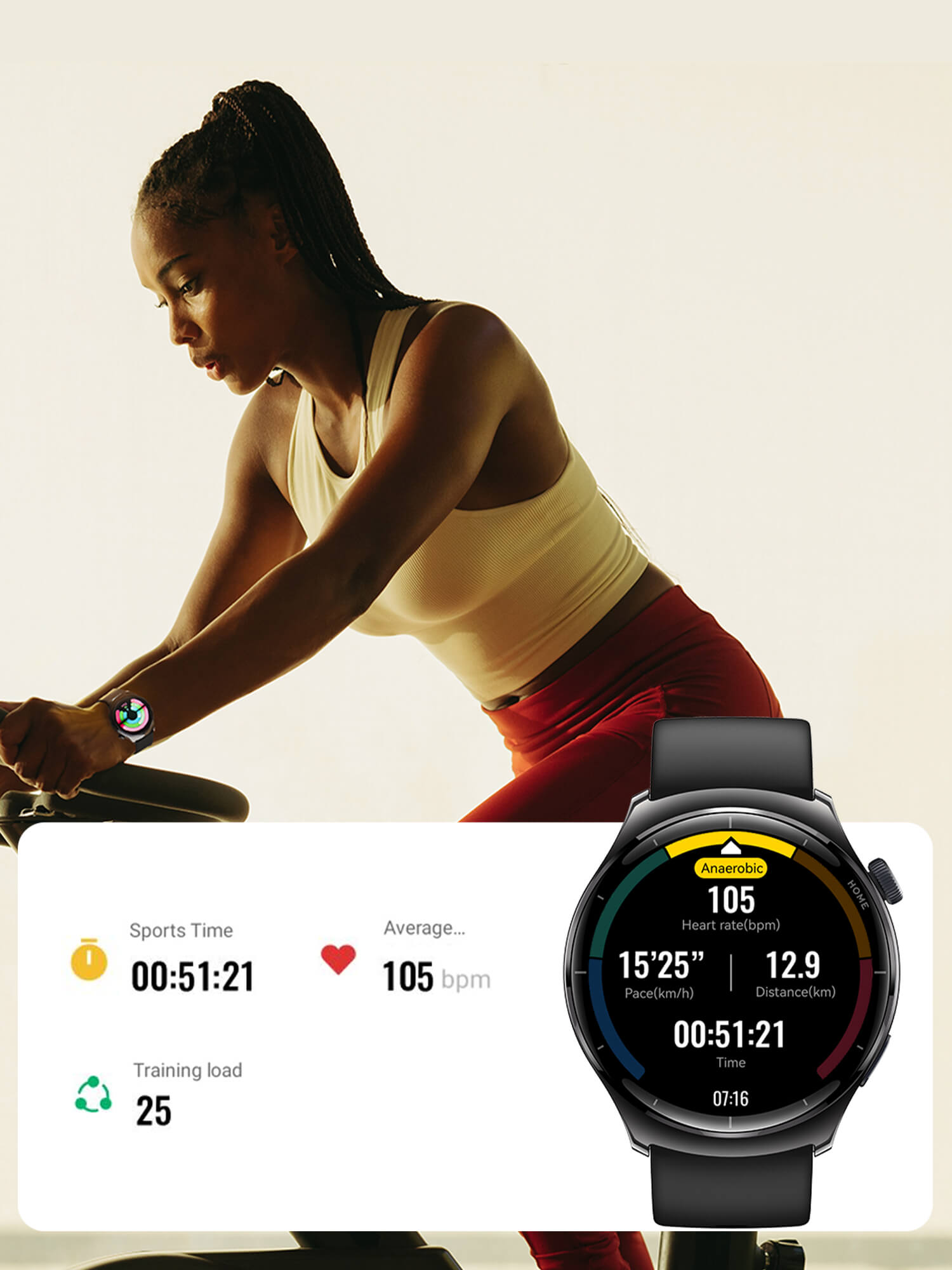 150+ sports modes with 18 specialized algorithms. 5ATM waterproof, 10-axis sensors for precise motion tracking and real-time GPS.